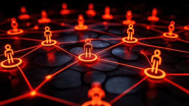 Network connection, glowing red nodes.