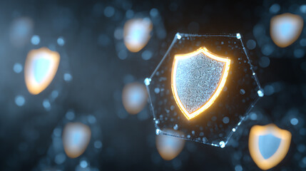 Conceptual image of digital security with interconnected shields representing protection against cyber threats.