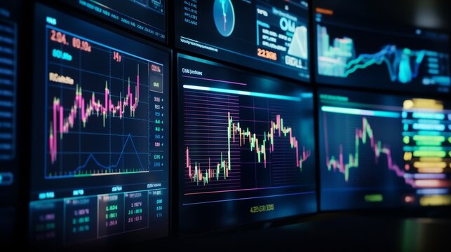 A magnifying glass on complex digital display showcasing vibrant multicolored graphs and charts for data analysis or market research insights today