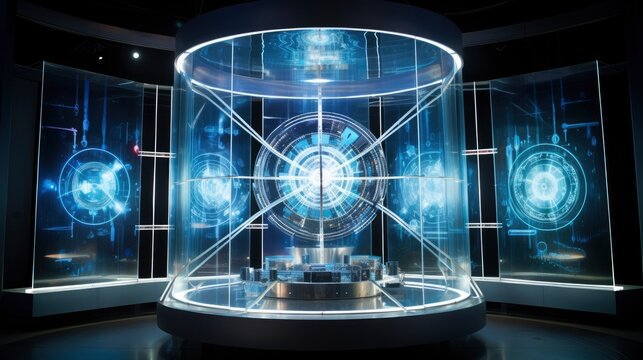 Holograms of the planet earth, moon, Jupiter moving along an ellipse in space 3d illustration