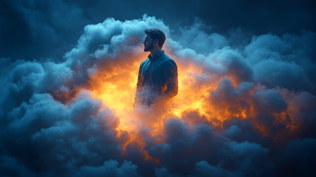 Cloud in a server room symbolizes cloud migration and digital transformation minimalistic bright tone modern blurred empty blank caption space on the side