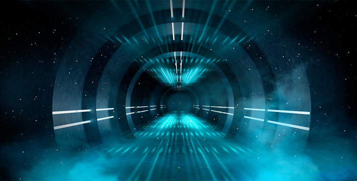 Futuristic neon lit digital tunnel background