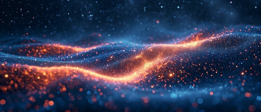 A digital tunnel of streaming light particles, with blue and orange tones, representing speed and futuristic data flow