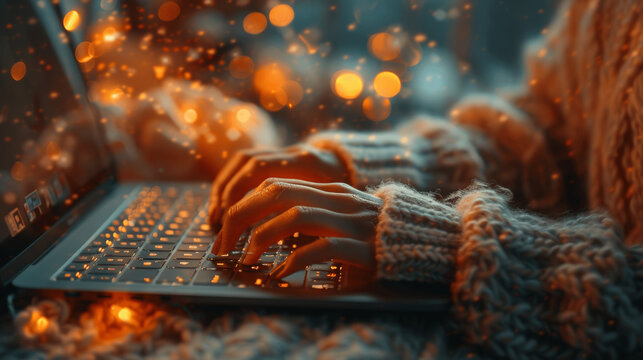 Close-up of individual typing on laptop with blank screen