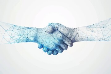 Minimalist blue low poly handshake - essence of professional networking and collaborations