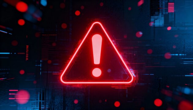Red alert warning on black digital interface background