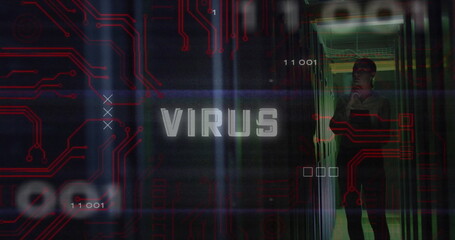 Digital virus concept with circuit board and binary code design