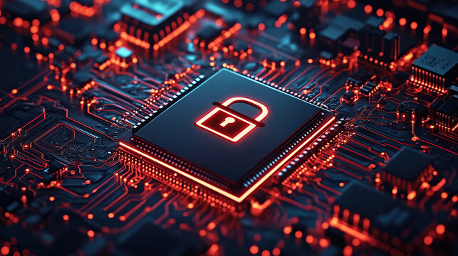 Cybersecurity Lock on Circuit Board for Online Data Protection