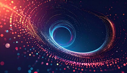 Abstract swirling vortex of colorful particles on a dark background