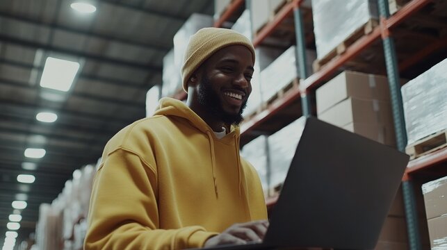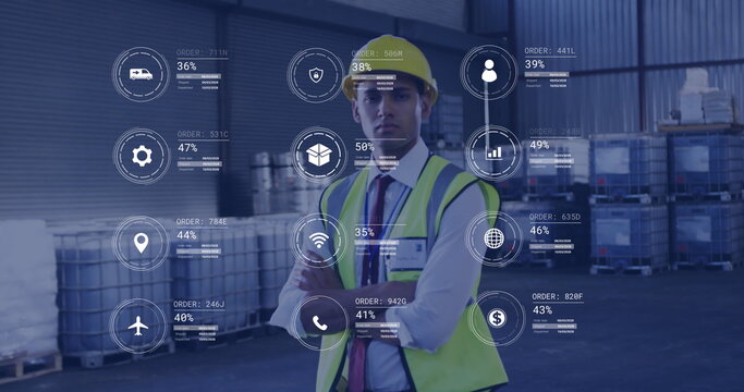 Digital Warehouse Worker Analyzing Shipping Data Technology Images