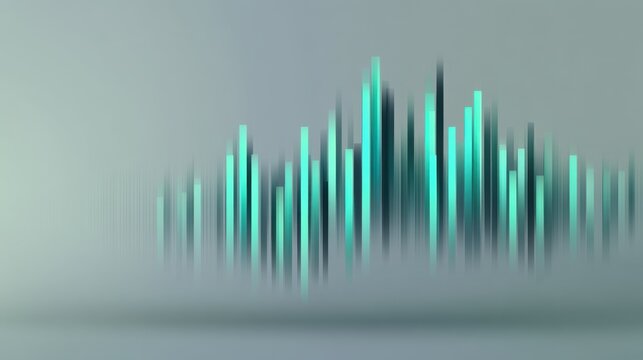 Abstract representation of sound waves with digital elements, showcasing vibrant teal bars fluctuating in a blurred background, conveying technology and audio themes