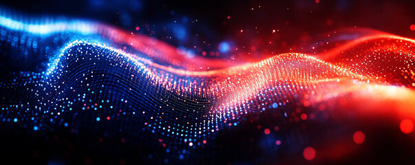 Colorful abstract digital wave landscape with glowing dots and vibrant neon lights creating a futuristic and dynamic atmosphere