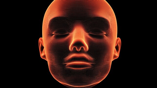 A close up of a head with a red glow. The head is in a black background. The head is a computer generated image