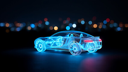 Futuristic hologram sports car on dark background
