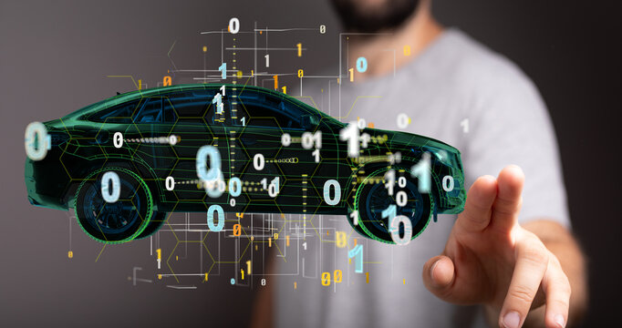 Digital Wireframe Car With Energy Data Interface Illustration Images