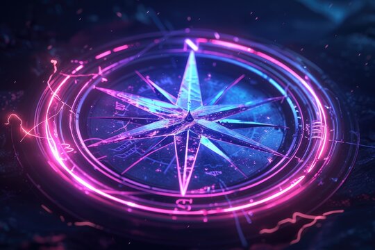 Displaying digital wireframe globe projecting global data network over coastal sunset seascape