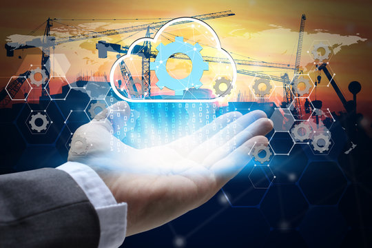 Digital World And Construction Scaffolding At Sunset Images
