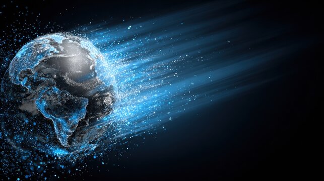 Digital pixel earth design with abstract data elements forming a modern internet background, representing global connectivity, network communication, and futuristic technology concepts