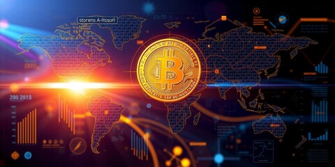 Futuristic Global Digital Interface with World Map and Technology Elements