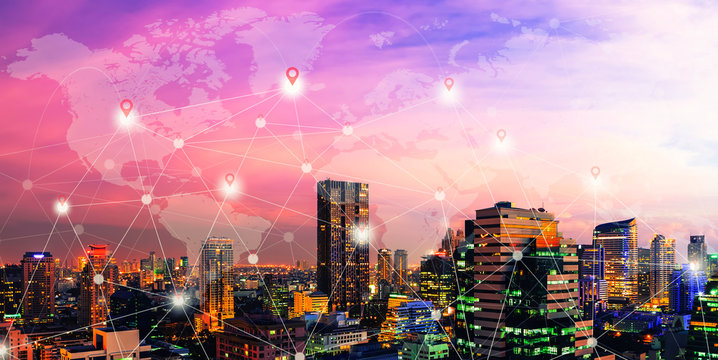 Global Network Connection Colorful Pins World Map Illustration Abstract Background Design Concept International Business Communication Technology Networked World Interconnection Digital Art Graphic