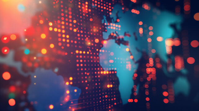 Abstract Digital World Map with Red and Orange Visual Effects