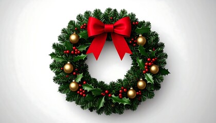 Festive holographic radar ui with evergreen wreath and red berries on digital grid