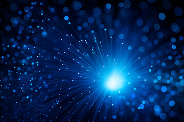 AI generated abstract fiber optic light with glowing blue neon strands and dynamic bokeh energy creating a futuristic digital flow background suitable for technology and data concepts