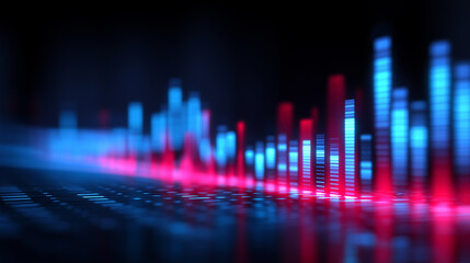 Vibrant digital stock market graph with rising green candlestick patterns on dark navy monitor screen displaying financial growth and analysis