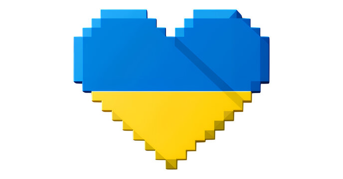 Pixelated Blue and Yellow Heart on Transparent Background, 3D Design Element for Digital Media