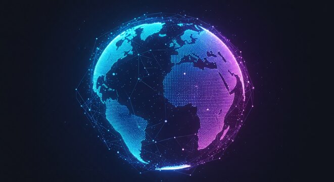 Digital network globe with data connections, futuristic IT concept, isolated PNG style