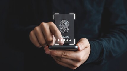 A biometric fingerprint scanner symbolizes secure access, digital identity verification, and advanced authentication technology.
