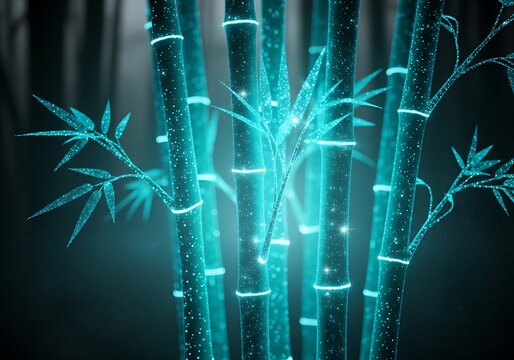 Abstract luminous bamboo stalks and leaves digitally enhanced for background