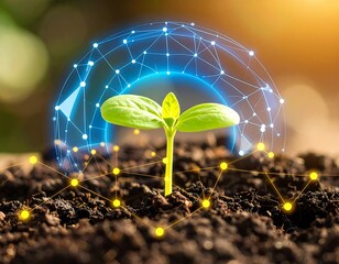 Futuristic aquaculture facility with solar panels and digitally enhanced fish
