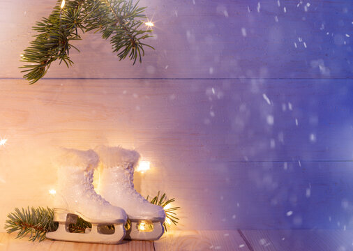 Festive winter landscape with falling snowflakes