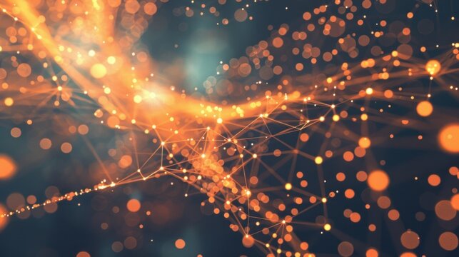 Abstract light and purple particle backdrop with illuminating dots and stars digitally generated.