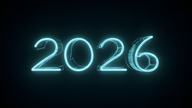 Neon Glow Number 2026: Futuristic Blue Modern Design with Illuminated Digital Art on Dark Background