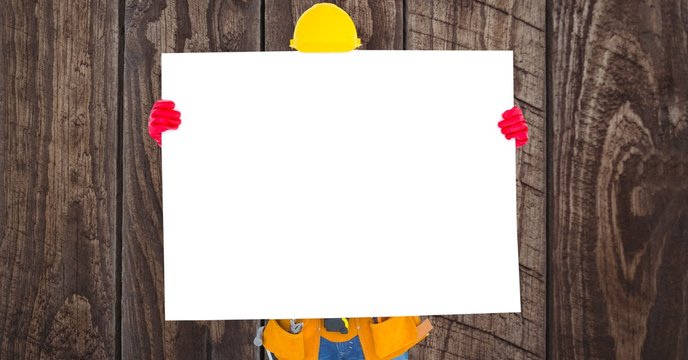 Worker holding blank bill board