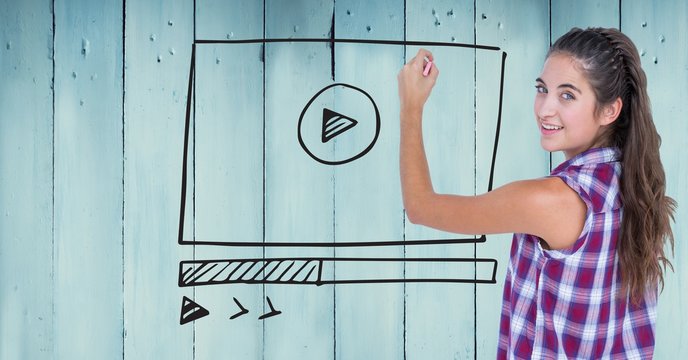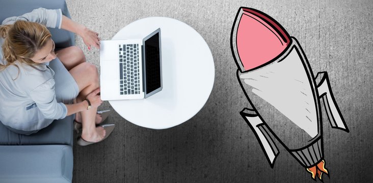 Composite image of woman on her laptop