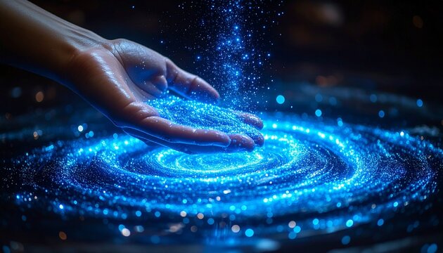 Dynamic blue wave with glowing particles highlighting innovation, data flow, and abstract digital background