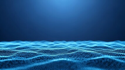 Abstract Blue Digital Wave Grid with Flowing Data Network
