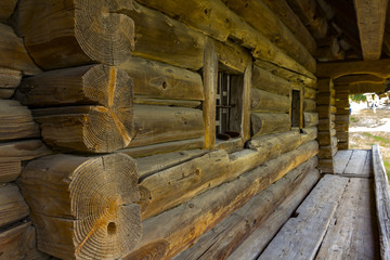 The wall of a dilapidated house from the log
