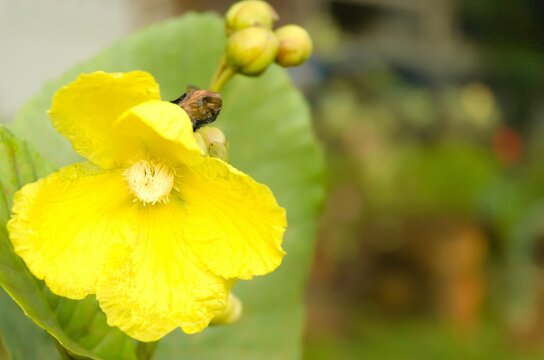 Dillenia suffruticosa or yellow simpoh flower blooming in the garden.