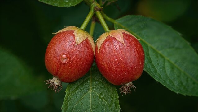 Two shrubby dillenia suffruticosa with water droplets captured in selective focus