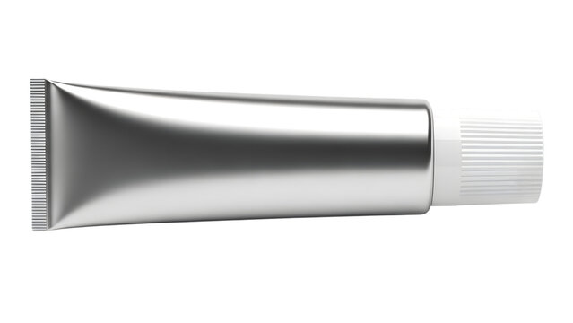 Silver metallic squeeze tube with white threaded cap isolated on a transparent background ointment tube