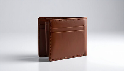 Standing Brown Leather Wallet In Low Key Lighting Setup