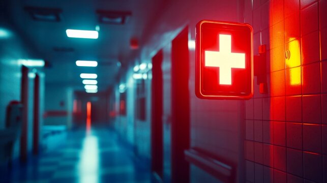 An intriguing ambiance is created in a dimly lit room by a neon light against a textured brick wall
