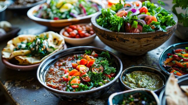 The aroma of charred vegetables and savory dips fills the air enticing hungry diners.