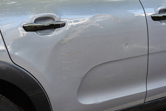 Car Ding: Close-up of a car with a notable small dent or ding