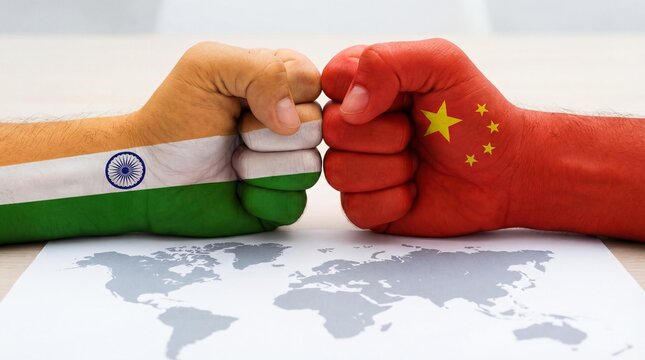 Concept of trade war between USA and China, USA or United States of America and China flags painted on two boxing gloves, generative ai