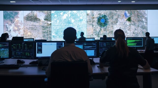 Geoeconomics and geopolitics: silhouette of a person with their back turned, looking at a world map on a screen to direct operations and control the future of countries.